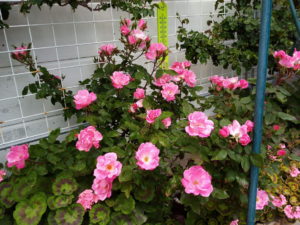 買い物に行く途中、I商店さんの薔薇が綺麗です。1.5時間後、先程の雲が南西にブリッジしました。