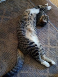 4時少し前に起きて、カリカリを用意している内にうめは表に出掛け、福だけがジュレを食べました。トラ子は外出中です。