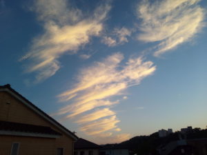 パソ塾に行く時間になりました。方向性が明確な雲が出ています。