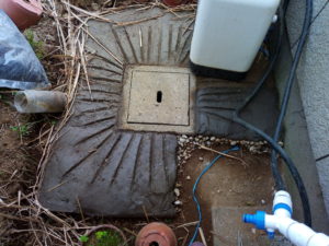 モップ専用の洗い桶の役に立たない!ローラーを外して外へ持ち出し、10㍑バケツに新しい水を汲んで、汚水は風呂場の三角形のゴミ取りを通して排水桝へ流しました。