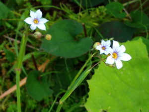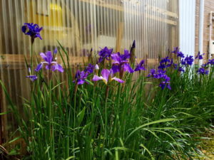 淡い水色の庭石菖が綺麗です。山々の木々がブロッコリーになって来たのはつい最近です。