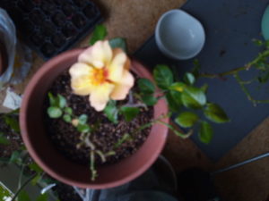 春のミニ薔薇最後の蕾が全開です。今日には散ってしまうでしょう。コガネムシの幼虫が住みついちゃったり、私が肥料を上げた後でコガネムシの幼虫を探す為に土をかき混ぜて、多分根っこに直接肥料が触ったりして葉を落とす事になったり、散々でしたね。ごめんなさい。秋まで確り養生してまた花を見せて。楽しみにしているよ。