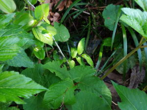 今朝の庭は緑が濃いです。カラーの白い花は一番手前が12―13本、次の株が10本位、柿の木の周りは25―30本の花が上がっています。一昨日、終わった花は手折りました。種が出来てどんどん株が増えてしまいます。カラーは叔母の思いでに繋がるから綺麗に咲かせてあげたい。後で仏様にもお供えしましょう。