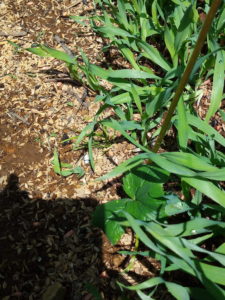 真ん中に見えるのが百合のカサブランカです。去年は途中で消えてしまったので、もう駄目か、と思っていました。