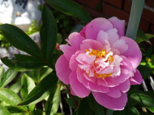 草取りをする前に芍薬の写真を撮りました。お隣の小母ちゃんからヤマザキパンの景品のお皿を2枚頂きました。