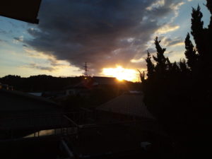 5時6分には山の稜線からお天道様が顔を出されました。日の出は4時36分でした。その頃に綺麗な雲が出ていましたが、撮るのを忘れました。北北東の雲が少し気になりますね。