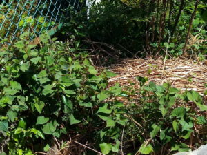 やってみて何か分かってきましたよ~。ドクダミを採るつもりで刈り始めましたが、成程、ミントだけ残してジョキジョキ鋏で切って行き、仕分けして堆肥枠に入れ、ドクダミだけはバケツの水の中にジャボン!これが一番早い。左の写真が未だドクダミ採りをしていない処。真ん中がafter。右の写真が後でする処。