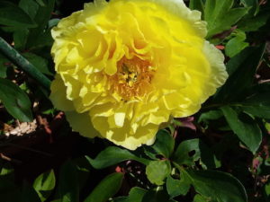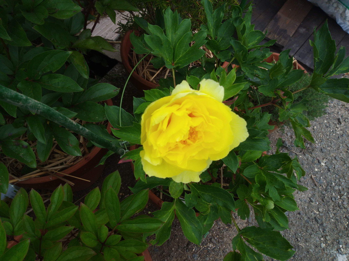 芍薬が晩生オリエンタルゴールドの花が咲き、日に日に大きく育っています。オーガンディみたいな薄い花弁が綺麗です。紅色系は二番花が咲いています。