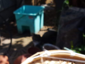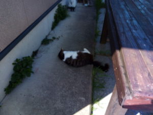 5時少し前、トラ子が戻って食事です。8時半、今まで古紙準備、ドクダミを少し採り洗って干して、裏の草をチョキチョキして来ました。猫達は…福は西隣さんでハンティング中…狙いを定めて呼んでも知らん顔!トラ子は何処かへ向かって歩いています。うめは一人で遊んでいます。