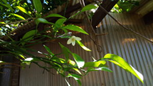 夏蜜柑の花もそろそろ終わりです。アゲハチョウが盛んに産卵している筈ですが、小鳥が沢山来るためか、幼虫は見当たりません。