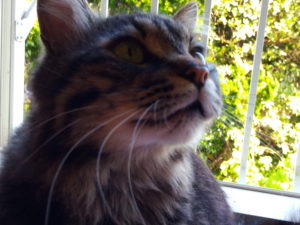 昨夜寝られなかった部分を食後の昼寝で取り、洗濯ものも乾いてホッとするとともに、梅雨の走りが始まる気配を週間予報から感じ取っています。庭に出れば、うめとタイガーがバラバラでやって来て私に合流します。福もうめの声を聞き付けて二階からやって来ました。