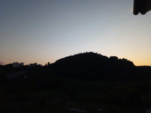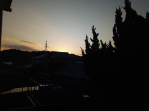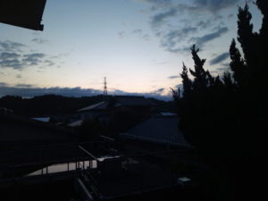東の画像です。裏の裏のお家の屋根の東側からお天道様が上がって来ます。日の出は4時27分です。