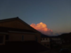西南西の雲が朝焼けを始めました。急いで東の窓辺へ行ってみましたが、東では朝焼けが見られませんでした。3枚の時間差は5分投稿一覧程ですが、雲が発達して来ています。館山辺りで激しい雨を降らせた雲かと思いましたが、雨雲レーダーで見るとその雲は更に南東海上へ抜けており、新たに出来た小さな雲の様です。