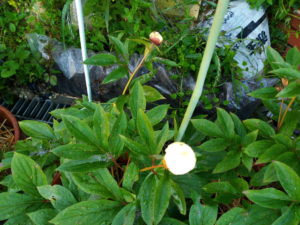 昨夕までは白く乾いて居た庭の土は、小一時間の雨ですっかりチョコレート色になりました。今朝、水遣りの予定でしたが、施肥と海水EM活性液希釈を上げる事にします。