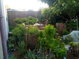 どくだみ採りをしながら、一階のモップ掛けを海水EM活性原液を撒いて拭きました。ドクダミを採ると色々な草も取る事が出来て一石二鳥です。生ゴミバケツを一つ堆肥枠に空けて草を乗せました。白躑躅の引っ越しの準備を始めました。予定地にある菊を梅の樹冠下に移動します。プリムラを夏蜜柑の樹冠の下に移動し、白躑躅の根鉢より少し大きめの穴を掘り始めます。見えない木の根等がきっとあると思います。天気jpでは雨無しですが、ソラマドでは6月4日位から雨がありそうです。