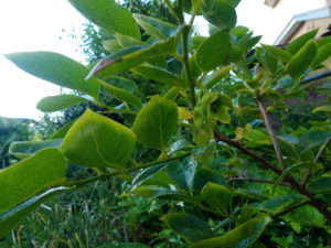 梅の垂直枝をピンチして10―15㎝にしましたが、ピンチした両脇から小枝が出て来ています。梅の花芽分化が7―8月ですので、台風後まではいじれませんね。