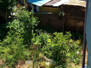 左がbeforeで、右が15分後です。私は禅寺丸柿の後ろの薮を庭木鋏でチョキチョキと切って来ました。背の高いどくだみも花を着けたものが10本以上穫れました。これも洗って干してあります。切った枝葉には野ばらも入って居るし、此処はうめの物置への通り道なので、1日置いてしんなりさせてから此処にはもう一つ堆肥枠を作ります。此処は土地が斜めになっているので、何かを植えにくいし、今まで草等がバンバン生えて来た処で土中微生物も野菜型ではないので、先ずは堆肥を作って行きます。