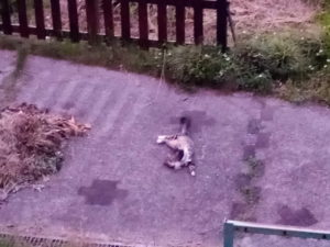 11時頃、うめが現れ、『お土産よ~』と言って来ました。トカゲの尻尾でした。まだ動いています。『ありがとう!良い仔だね。』とオヤチュカリカリを3粒上げました。やっぱり、お土産らしい(笑)。トカゲの尻尾には以降、見向きもしません。晴れているので、何となく湿っぽくなったどくだみと民党をもう一度干しました。