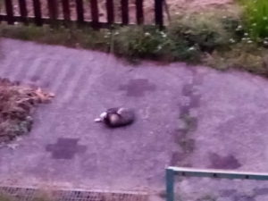 お風呂に入って居る間、うめが人間が降りてくる音みたいな音を出して階段を下りて来て表に行ったようです。猫達はトントントン、と折りますが、うめはトトッ、トトッ、と下りて来ます。