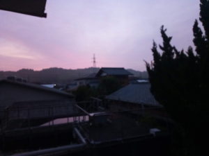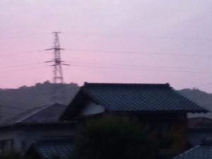 この時間で茜色!?珍しいですね。鉄塔の処には薄っすらと釈が出ています。4時5分の空です。期待に反し、赤い光が見えたのはこの時だけでした。