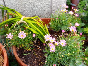 右: (追加)手前のトスカーナバイオレットの花です。