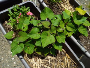 挿し穂取り用のお芋の蔓が少しだけ伸びて来ました。13日が下弦の月で22日が満月です。其の辺りで挿し穂が出来たら嬉しいですね。