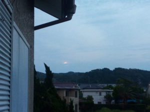 右: 明日が満月です。丸い月が上って来ました。空は鱗雲。
