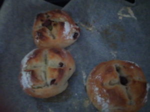 遅くなったけれど、仕込み30分の寝かせタイムです。レシピはレーズンフランスで、レーズンが甘納豆に置き換わっただけです。13時45分一次発酵に入りました。3時15分で一旦様子を見ます。1.5倍以上になって居れば畳んで、切って表面を晴らせるようにまとめ、成形します(完了!)。ラップを掛けてベンチタイム15―20分、もう一度一つ一つ広げ、更に甘納豆を5―6個包んでしまいましょう(ピピ、ピ~ッ!脱線です)。2次発酵40度で30分が終了したら、210度で予熱開始。その間に粉振ってクープ切ってクープに砂糖をパラパラとして無縁バター2.5g乗せて、210度で15分焼きます。