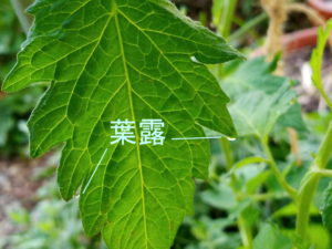 左:  トスカーナバイオレットの葉に葉露が出ていました。