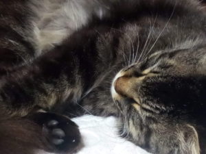 福が飛び込んで来ました。タオルドライしてちゅ~るを上げて暫くするとびしょ濡れトラ子が帰って来ました。タオルドライをすると福が『僕も~!』。最後にうめとタイガーさんが戻って来ました。タイガーさんは一本今までのちゅ~るが残っていたから、大奮発供与しました。御皿に出した感じは国産の方が柔らかそうですね。感想が猫達の口からきけないのが残念です。『流石、国産だねぇ!味が違うんだよ。』とかね、聞きたかったな。み~んなお昼寝タイムです。福は大理石の上で一人冷たさを味わっています。