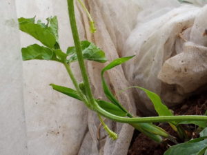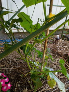 夏すずみにネットを掛けました。自分の背の高さまで生長点が伸びたら、摘心して子蔓を出させます。