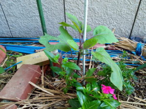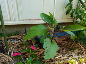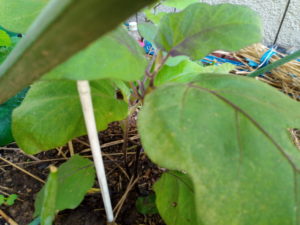 茄子飛天竜の第一果を全て取りました。地面につきそうな葉は全て取り去りました。毎日丁寧に見ないと虫がニジュウヤホシやらカメムシやらが来ていました。