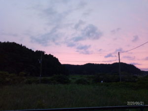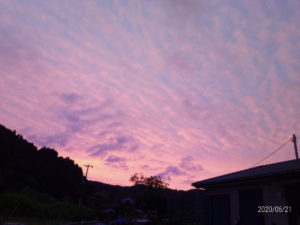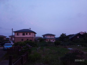 最低気温21度台、最高気温24度台、曇り、朝9時頃迄は北東の風、其処から風が時計回りに変ります。風力は3―5mと穏やかです。写真は4時28分の撮影です。日の出は4時25分、日の入りは18時57分です。