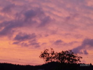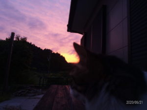 遂に西南西にも茜色が出ました。時間は19時を回って居ますから残照です。最後に、これでもか!と明るく光ります。19時3分。タイガーとうめも来ました。