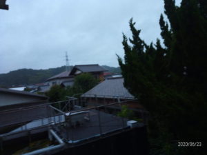 4時には上がっていた雨が5時前にまた降り出しました。細かい雨ですが、樋に集まって裏のお家の軒下で音を立てています。