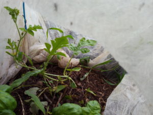 まだまだ私の眼は出来ていないですね。大きい方のバジルはてしま屋さんから買ったもので、小さい方は地元で買いました。地元の苗の方が確りしている様に見えましたが、此処へ来て葉菜としての成長が違って来ました。もう少しで一番上の節毎収穫出来そうです。じゃぁ、今日買うのは胡桃ですね。ジェノベーゼ用にも半分!クッキーに半分!