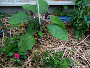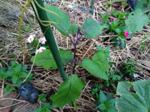 茄子がいきなり大きくなりました。施肥をして雨が降ったせいだと思いますが、座布団葉になって呉れるかなぁ。
