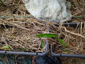 まだまだひ弱ですが、竜馬生姜に葉が出て来ました。