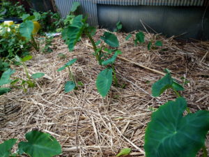今年の里芋軍団、中列が石川早生で後は赤芽です。