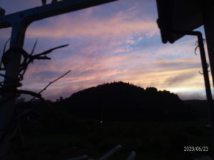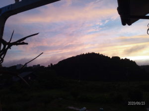 4時24分の空です。おたふく綿さんのプールには雨の紋が出来ていません。既に低気圧の中心は北上して海上に在ります。小さな雲が6-7時台に雨を降らせるようですが、小雨程度でしょう。