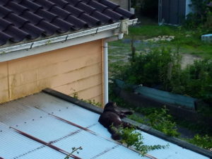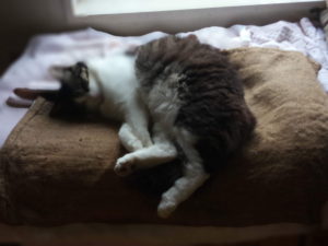 4時起きでした。トラ子、うめ、タイガーさんにジュレと朝仕様のカリカリを上げて、南西の雨戸を開けると西隣さんのスロープに福が居ました。『福、ご飯よ~!』5分後、廊下で福は確りジュレを食べていました。福は棚でゆっくり休んで居たので、ブラッシング、というより母さん猫の舐め舐めのつもりでブラシを掛けると、ブラシが触る前からゴロゴロ、ゴロゴロ、と喜んでいました。昨日の洗濯もので水切れの悪かったものを廊下に持って来ました。