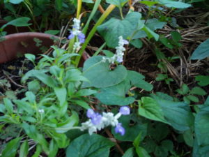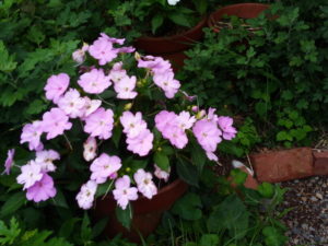 玄関扉を開けてサンパチェンスオーキッドピンクの背丈が一夜にして伸びているのに驚きました。雨と気温がサンパチェンスの遺伝子にご先祖様が育っていた熱帯の森を思い起こさせたのでしょうか。