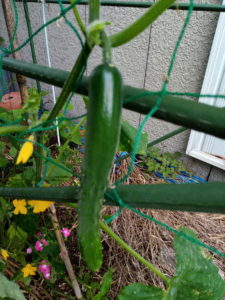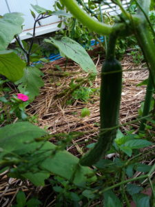 写真左が節生りで粉無しブルームレスと言って消費者の好みだそうです…最近、ここ10-20年の流行です。写真右は粉吹きの夏涼みです。胡瓜はイボイボで粉が吹いているものなんですけれどねぇ。西隣のAさんも四葉(スーヨウ)を好きじゃないと仰っていましたから、消費者の好みってこんなものなのかも。四葉は美味しい胡瓜で、生食に向きます。