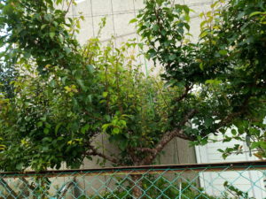 右: 夜になって玄関灯が灯ると天窓から見える枝先は長いので切りました。この枝を切った事が切っ掛けで実梅の剪定を初めて仕舞いました。7―8月には花芽分化が始まるので、その前に光が中心に差し込む様に、また十分な施肥と活性液を与えてみます。兎に角、試行錯誤です。事実と事実を結んで、後はその間を自分で考えて工夫して行きます。園芸書は殆ど役に立たない事が分かりました。