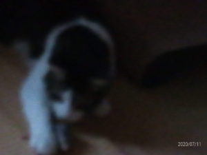 うめの猛烈アピールでうめとネズミちゃんをしていたら、物干しで『開けてぇ!』と福の声。ご飯を食べてから福もネズミちゃんに参戦です。仔猫化しています。追いかけるには体重が重いのですが、自分の前に転がって来たネズミを確り捕まえていました。明るくなる前だったので、スマホでは此処までしか撮れません。福も蝙蝠も速い!