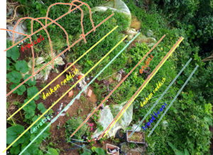B1の通路よりは玉葱になるでしょうね。それから人参と大根もう一種。余り細かく設定しない。一番西側が蚕豆大天です。私の性格を考えたら、細かくし過ぎると実践し難くなります。隙間はレタスですよ。