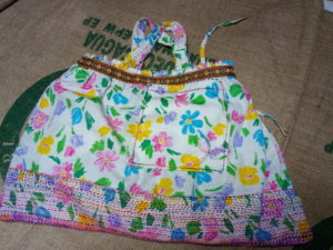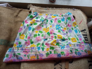 表地は昔、昔、池袋のキンカ堂で1m100円で買った、幼稚園のお絵かきみたいな生地を使う事にしました。