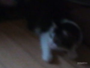 うめの猛烈アピールでうめとネズミちゃんをしていたら、物干しで『開けてぇ!』と福の声。ご飯を食べてから福もネズミちゃんに参戦です。仔猫化しています。追いかけるには体重が重いのですが、自分の前に転がって来たネズミを確り捕まえていました。明るくなる前だったので、スマホでは此処までしか撮れません。福も蝙蝠も速い!