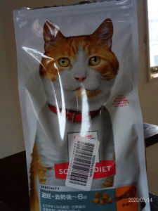 カリカリのパッケージの猫、顔つきがタイガーさんに似ていない?真正面から撮ると似てると思うんだけどな。