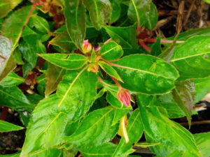 ピンチしたサンパチェンスに蕾が上がりました。マジェンタとオレンジです。オーキッドピンクも白も上がっています。